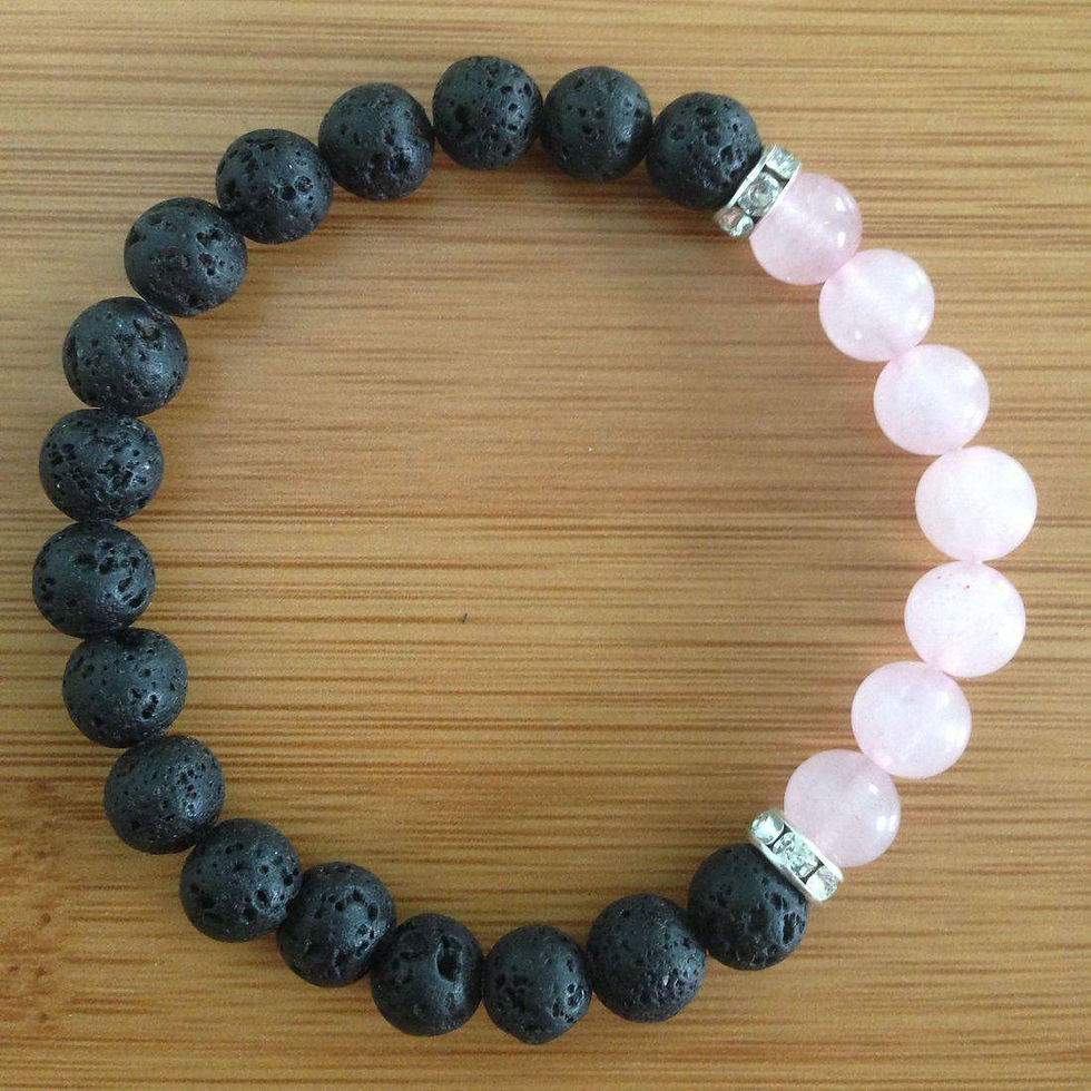 Rose Quartz & Black Lava - 2 Accent Beads - 8 mm Approx. Size = 7.5 " or 190.5 m